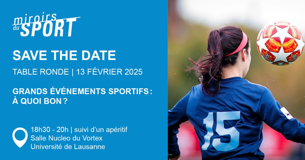 « Grands événements sportifs: à quoi bon? » Conférence « Miroir du sport », Salle Nucléo, Bâtiment Vortex, campus de l’Université de Lausanne