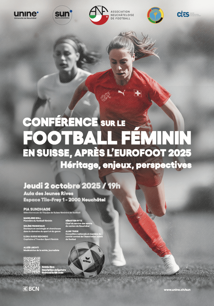 Conférence et table-ronde (réunissant: Christelle Luisier-Brodard, présidente du Conseil d’Etat vaudois, en charge du département des finances, du territoire et du sport. Membre du comité central de l’ASF; Raphaël Comisetti, président du conseil d’administration du centre sportif Malley SA, ancien footballeur professionnel; Jean-Philippe Leresche, professeur honoraire de la faculté des sciences sociales et politiques de l’UNIL. Modération: David Lemos (RTS).