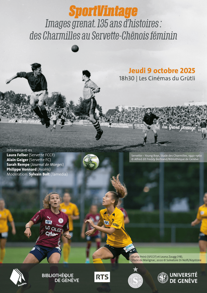 La soirée est organisée en collaboration avec: Archives de la RTS, Bibliothèque de la ville de Genève, Maison d’histoire de l’UNIGE, Servette FC.